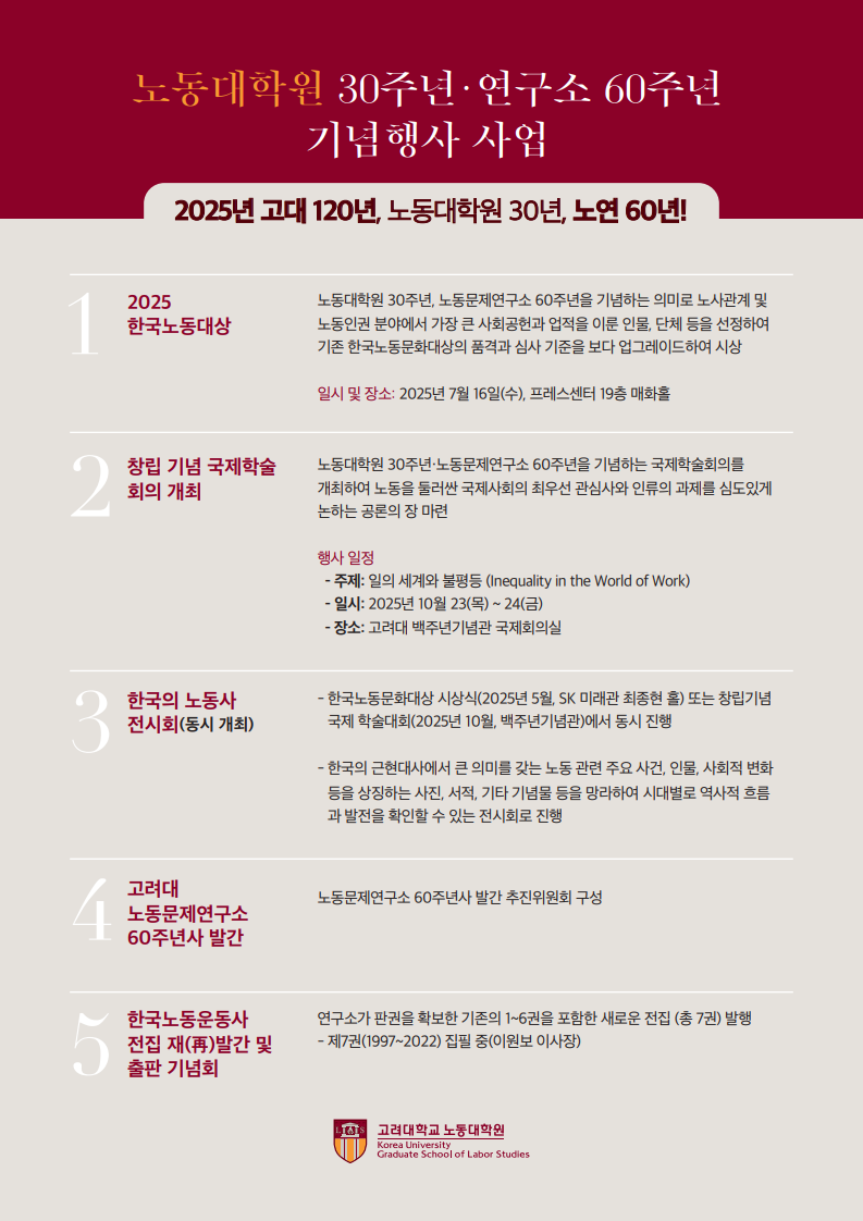 전체보기 연구소 소개 소장 인사말 노연의 역사 노연 60년 여정 역대 소장 조직도 노연사람들 연구소 운영진 연구센터장 상임연구위원 객원연구위원 연구센터 노사관계 연구센터 노동안전복지 연구센터 감정노동 연구센터 일의미래 연구센터 노동법 연구센터 노동데이터 분석센터 교육과정 노사관계전문가과정 노사협력고위전문가과정 노동이사 아카데미 출판물 노동연구 노동연구 원고제출 및 작성요강 투고 및 발행규정 연구윤리규정 원문보기 KU 노동이슈 브리프 노동학총서 한국노동사회포럼 한국노동사회포럼 한국노동대상 한국노동대상 소개 역대 수상자 게시판 공지사항 자료실 연구소 소개 소장 인사말 노연의 역사 노연 60년 여정 역대 소장 조직도 노연사람들 연구소 운영진 연구센터장 상임연구위원 객원연구위원 연구센터 노사관계 연구센터 노동안전복지 연구센터 감정노동 연구센터 일의미래 연구센터 노동법 연구센터 노동데이터 분석센터 교육과정 노사관계전문가과정 노사협력고위전문가과정 노동이사 아카데미 출판물 노동연구 노동연구 원고제출 및 작성요강 투고 및 발행규정 연구윤리규정 원문보기 KU 노동이슈 브리프 노동학총서 한국노동사회포럼 한국노동사회포럼 한국노동대상 한국노동대상 소개 역대 수상자 게시판 공지사항 자료실